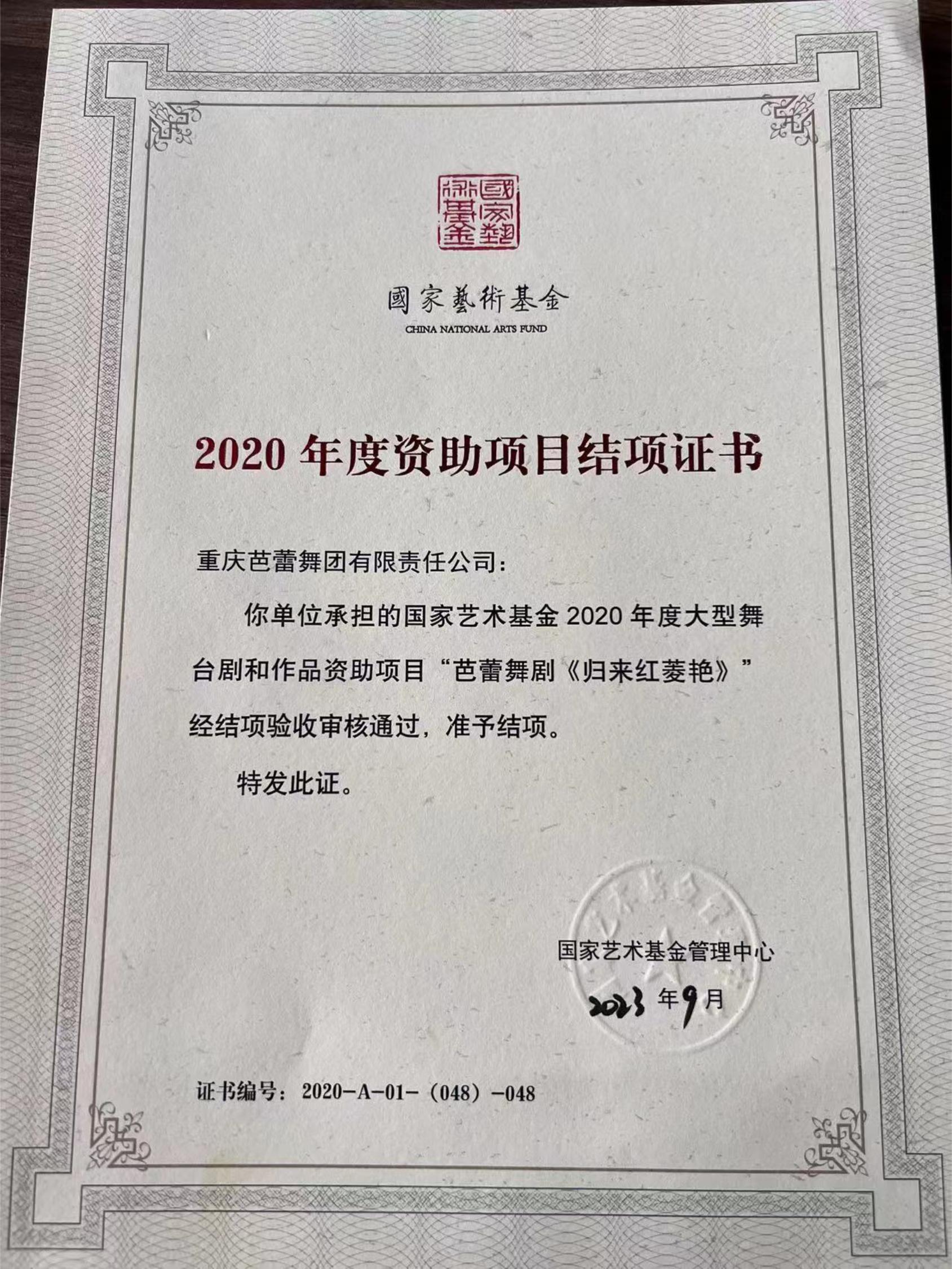 2020年原创芭蕾舞剧《归来红菱艳》荣获国家艺术基金舞台艺术创作项目。